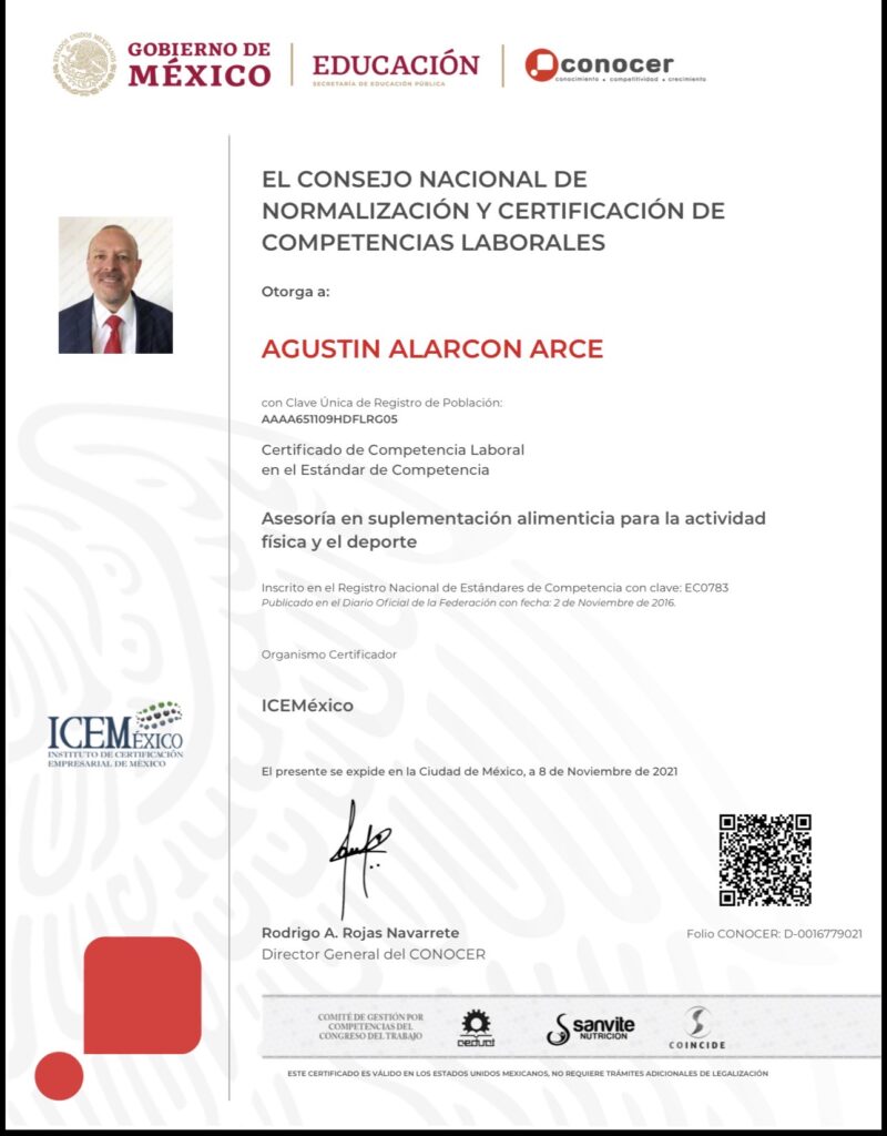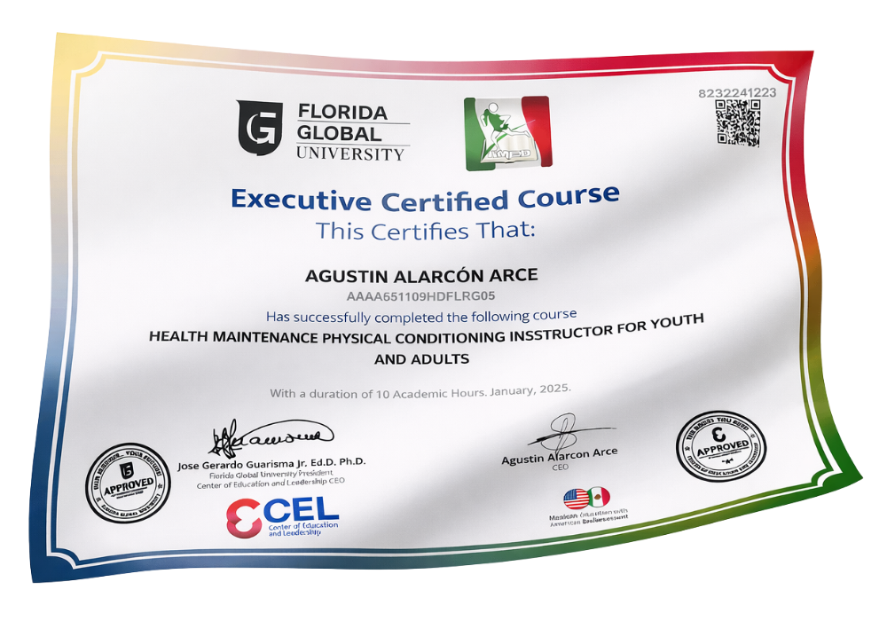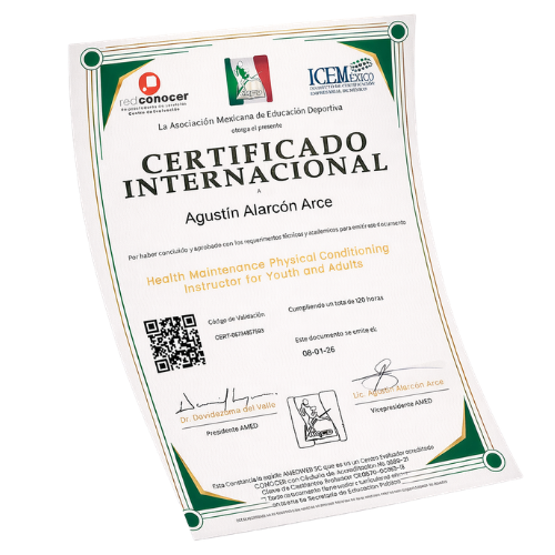 Al salir competente en los requisitos que marca el EC0474 Instructor en Acondicionamiento Físico para el mejoramiento de la salud de jóvenes y adultos. La emisión del certificado tiene un costo adicional de $160 USD.